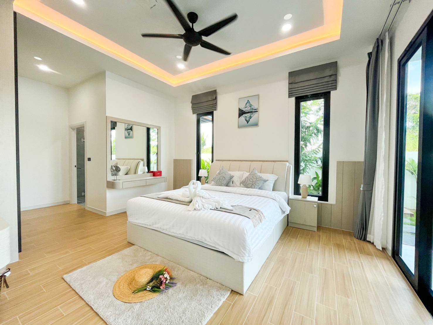 • 3 bedrooms + 3 bathrooms, all fully air-conditioned with ceiling fans
