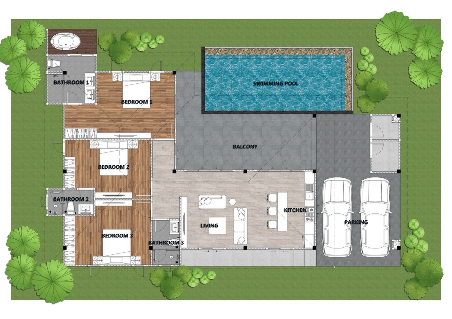 • 220 sqm living area on 405 sqm freehold land (full Chanote red title deed)