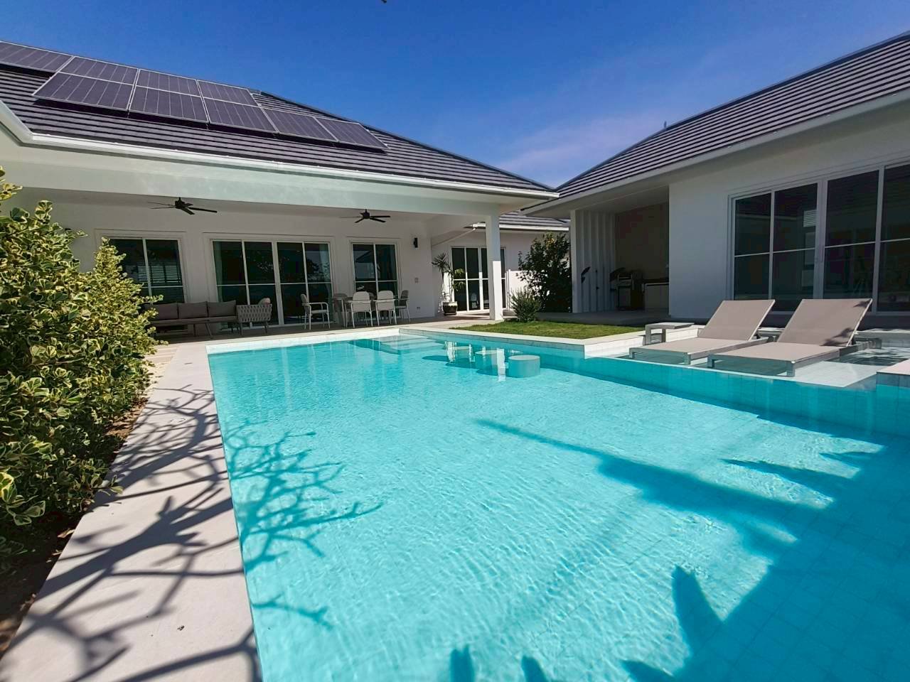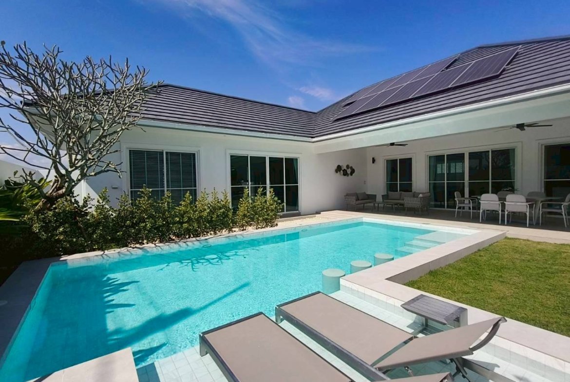 This modern 4-bedroom pool villa for sale in Hua Hin is a rare opportunity to own a fully furnished, move-in-ready home in the highly sought-after Soi 112 residential area. Offering generous living space, smart energy solutions, and high-end finishes, this property is ideal for family living, long-term residence, or investment.