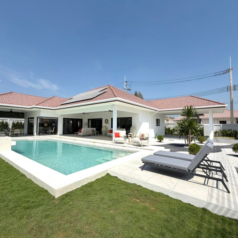 Discover this luxury pool villa for sale in Hua Hin Soi 112, offered fully furnished and ready to move in for only THB 9,590,000. This modern villa is an excellent opportunity for buyers looking for a high-quality family home, a holiday residence, or a strong property investment in Hua Hin.